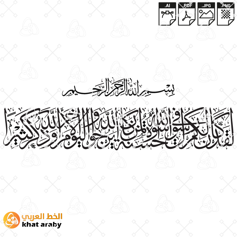 لقد كان لكم في رسول الله اسوة حسنة لمن كان يرجو الله واليوم الاخر وذكر الله كثيرا – خط الثلث