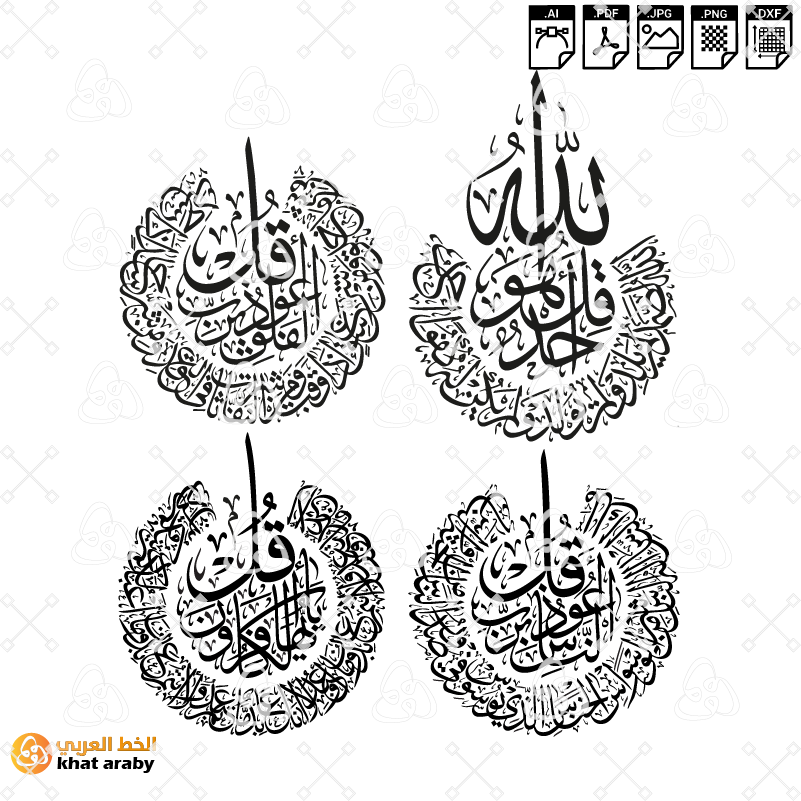 القلاقل الاربعة – المعوذات – خط الثلث – خط العربي  – مخطوطة  قابلة  للتعديل والتلوين والطباعة جودة عالية