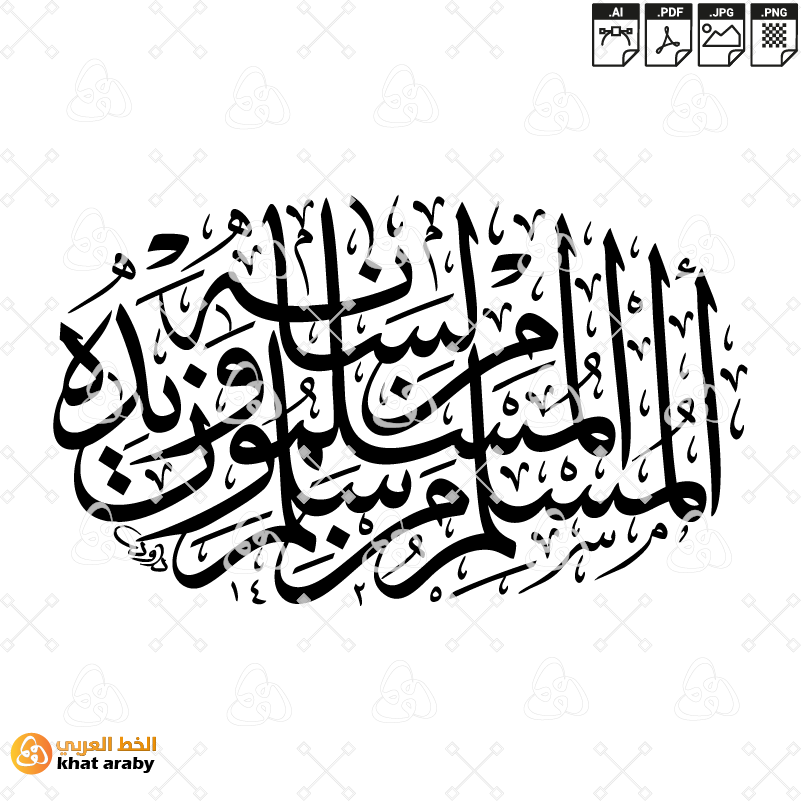 Support: All files are checked by Khataraby team. If you encounter any issues during or after the download, don’t hesitate to contact us. We are here to help and resolve any problems you might face. المسلم من سلم المسلون من لسانه ويده – خط الثلث