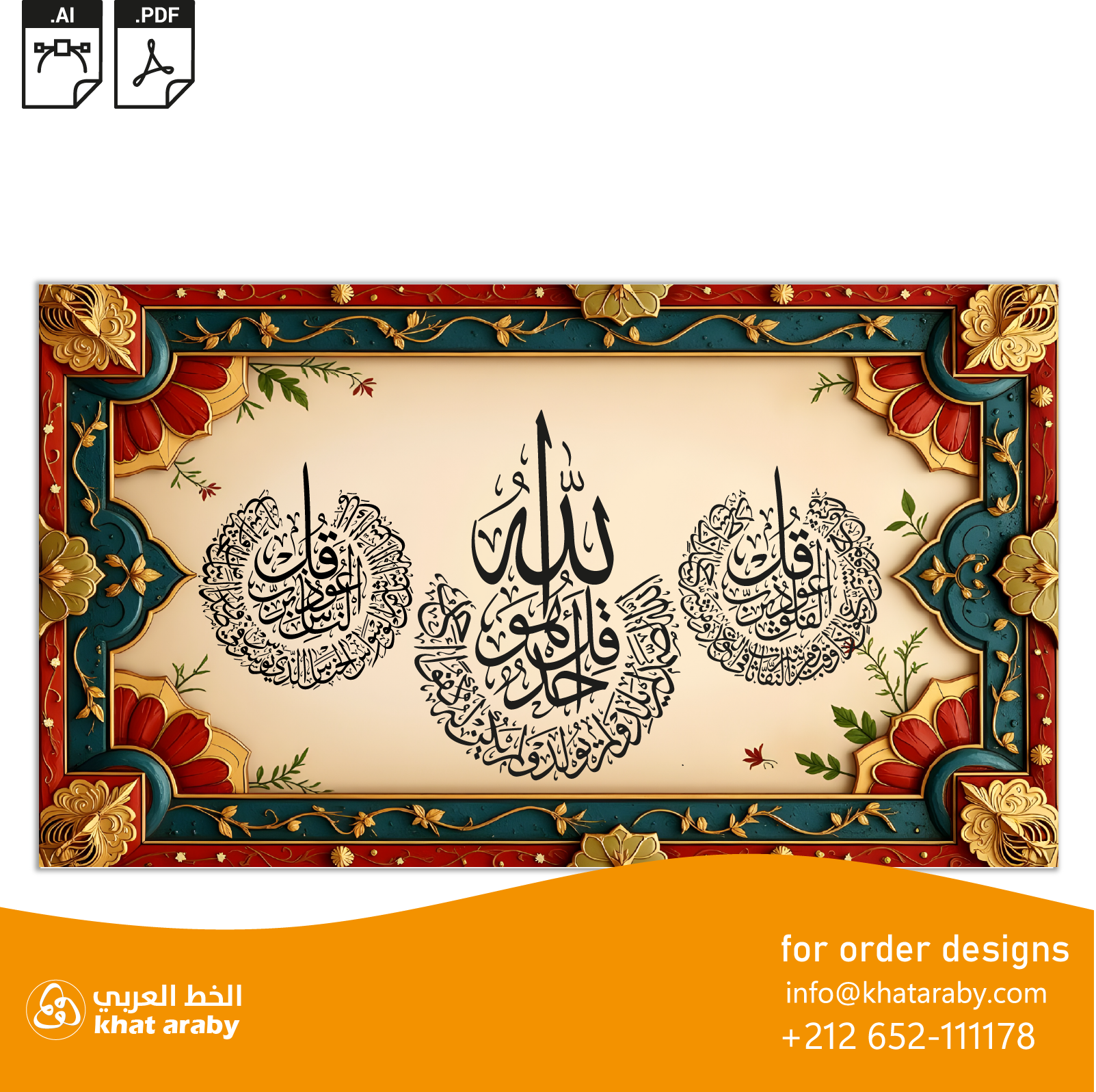 Support: All files are checked by Khataraby team. If you encounter any issues during or after the download, don’t hesitate to contact us. We are here to help and resolve any problems you might face. المعوذات – الاخلاص – الفلق – الناس – تصميم جاهز للطباعة – تصميم للطباعة