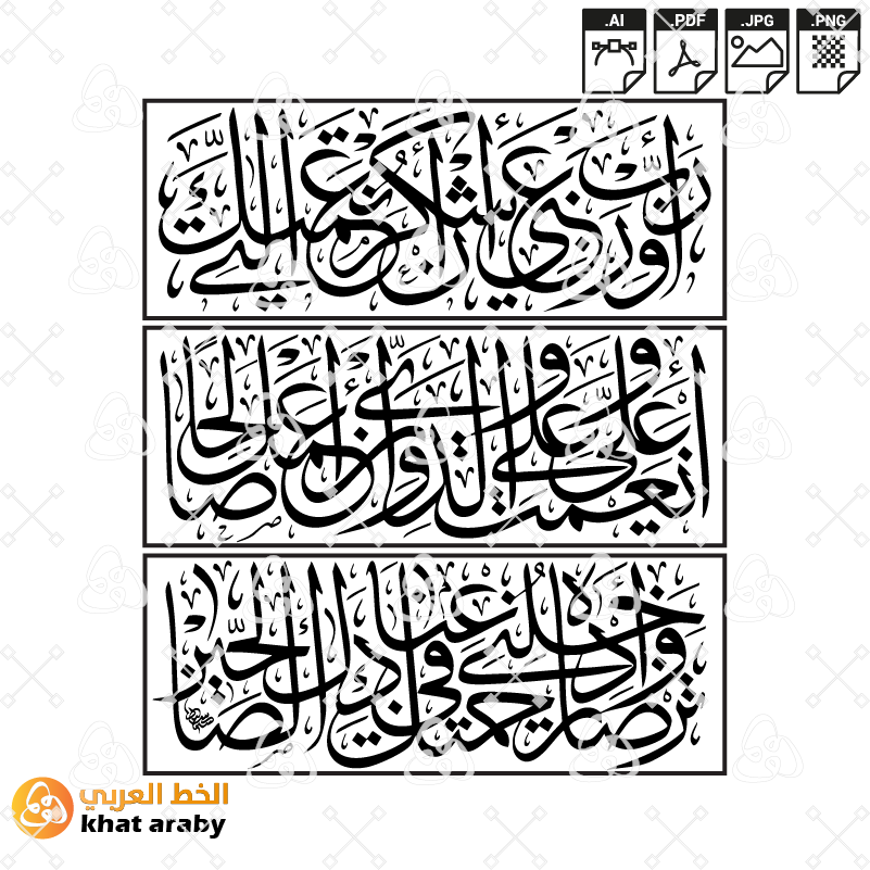 Arabic calligraphy – Arabic calligraphy design رب اوزعني ان اشكر نعمتك التي انعمت علي وعلى والدي وان اعمل صالحا ترضاه وادخلني برحمتك في عبادك الصالحين – خط عربي – تصميم الخط العربي
