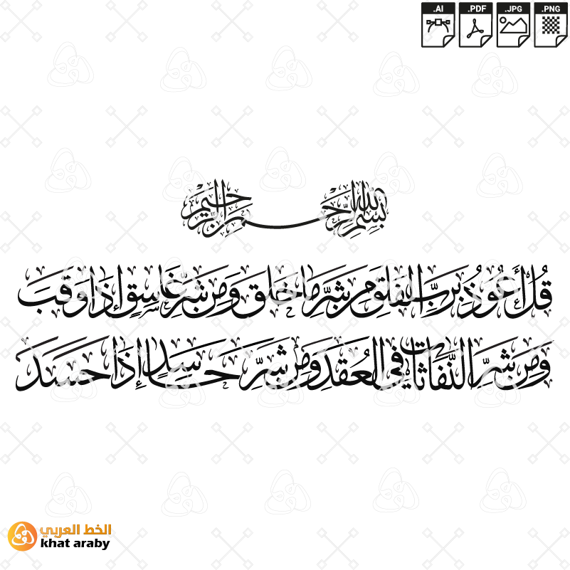 Support: All files are checked by Khataraby team. If you encounter any issues during or after the download, don’t hesitate to contact us. We are here to help and resolve any problems you might face. سورة الفلق – قل اعوذ برب الفلق – خط الثلث
