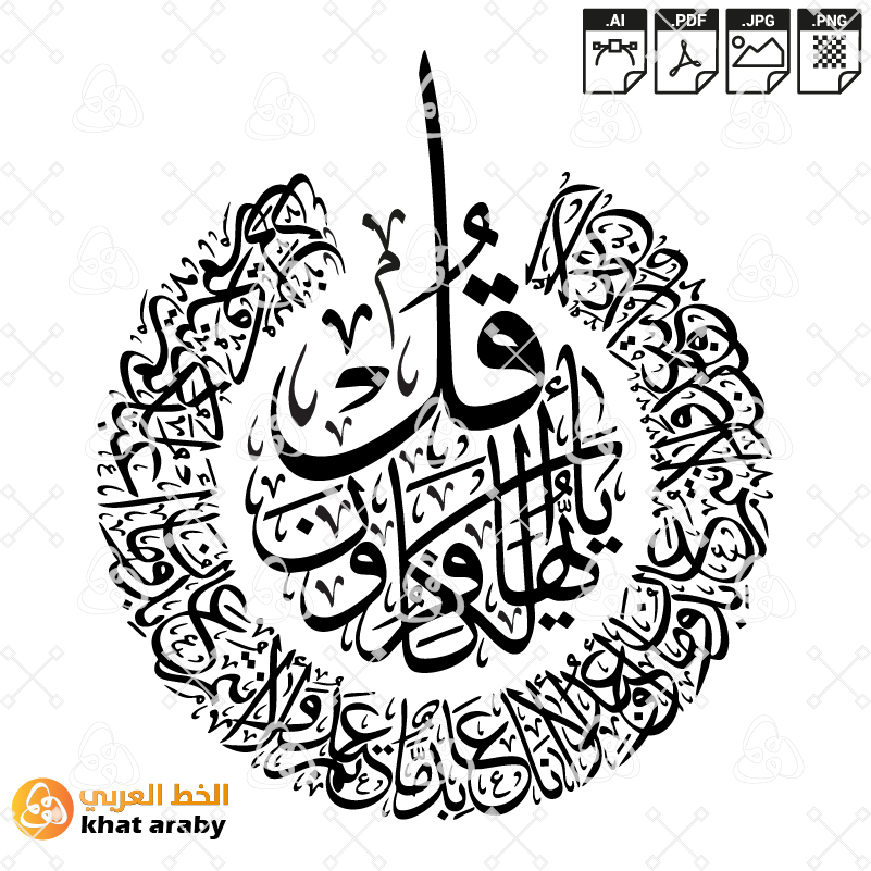 Arabic calligraphy – Arabic calligraphy design سورة الكافرون – قل يا ايها الكافرون – خط عربي – تصميم الخط العربي