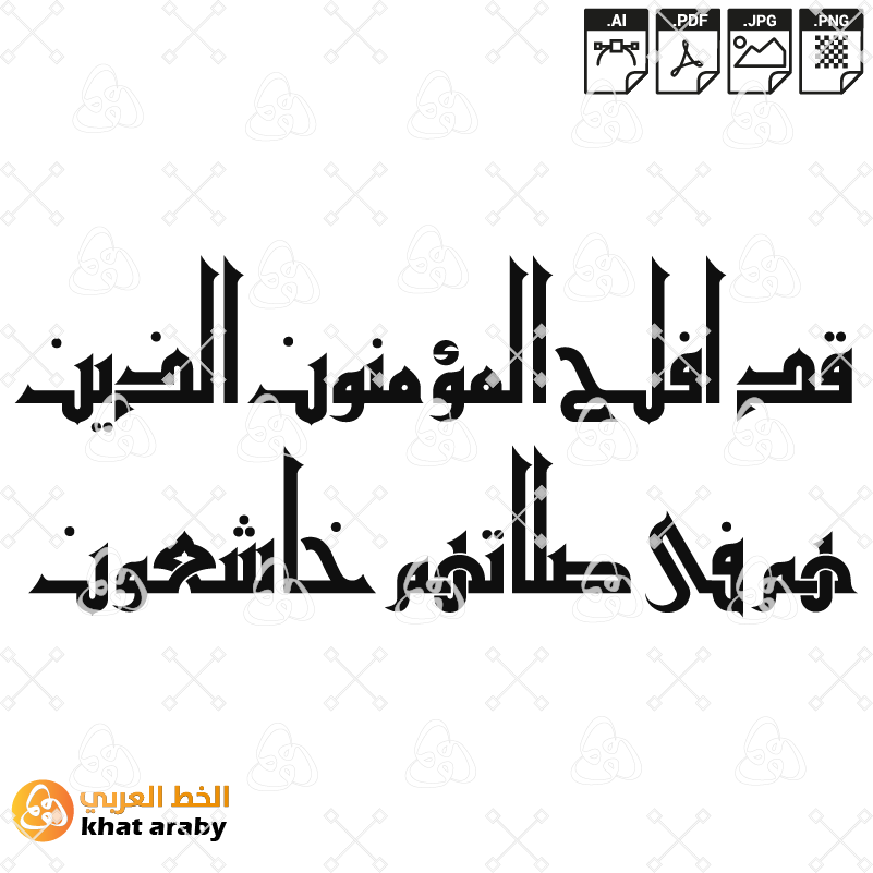 Arabic calligraphy – Arabic calligraphy design قد افلح المؤمنون الذين هم في صلاتهم خاشعون – سورة المؤمنون – الخط الكوفي – خط عربي – تصميم الخط العربي