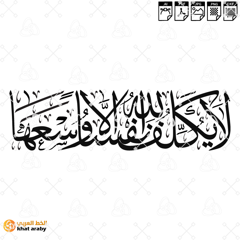 Support: All files are checked by Khataraby team. If you encounter any issues during or after the download, don’t hesitate to contact us. We are here to help and resolve any problems you might face.  لا يكلف الله نفسا الا وسعها – خط الثلث