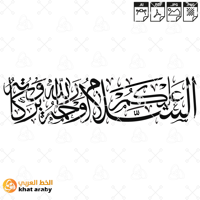السلام عليكم ورحمة الله وبركاته – خط الثلث – خط العربي  – مخطوطة قابلة للتعديل والتلوين والطباعة جودة عالية