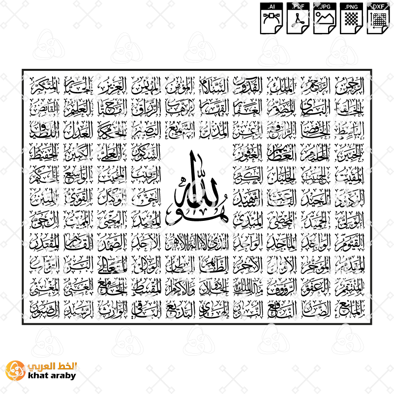 Khataraby: Arabic Calligraphy & Islamic Art Vectors أسماء الله الحسنى تعكس صفات الله الكاملة والجليلة التي يجب على المسلم معرفتها والتقرب بها إلى الله